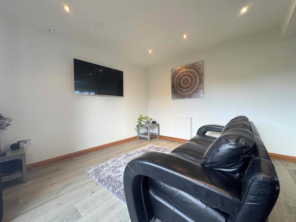 Open plan with the breakfast kitchen, this snug continues the wood effect laminate flooring as well as having a radiator, ceiling spotlights, and a UPVC patio door that leads to the side of the property.