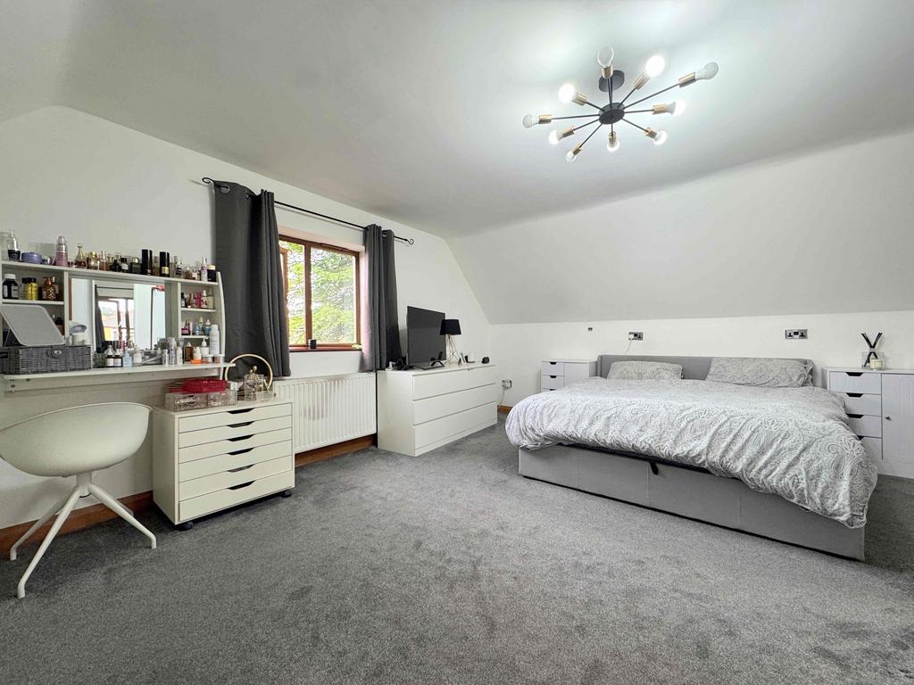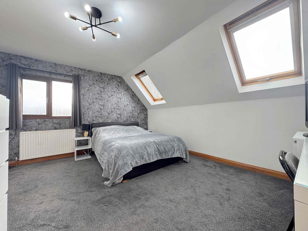 A double bedroom with a radiator, UPVC window, and Velux windows.