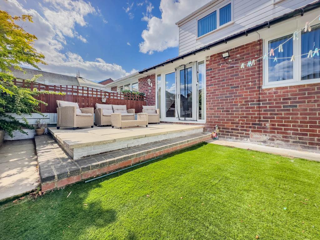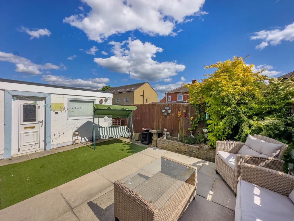 To the front of the property is a low maintenance paved garden with neat borders. Drive to side provides additional parking and leads to the detached garage. The garage has remote controlled sectional door, power and light with additional work shop area to rear. Access door to side leads into the rear garden. To the rear of the property is an enclosed garden with paved patio / seating area and artificial lawn.