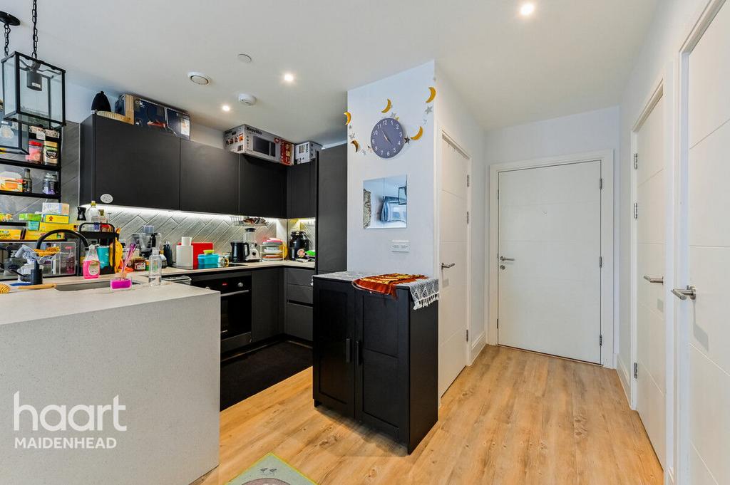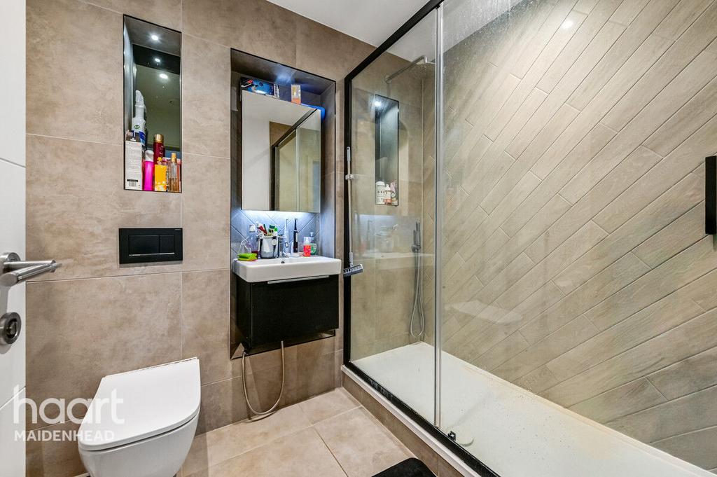 Finished to a high specification, this contemporary apartment features a spacious open-plan living area, a sleek designer kitchen with integrated appliances, and two well-sized double bedrooms – including a master with en-suite. A stylish family bathroom, underfloor heating, and large windows add to the light and airy feel, while high-quality finishes throughout make it move-in ready.