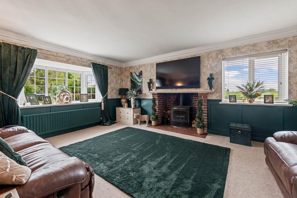 With dual aspect double glazed windows to the front and side elevations, feature brick fireplace and hearth with inset wood burning stove, radiator, T.V connection point.