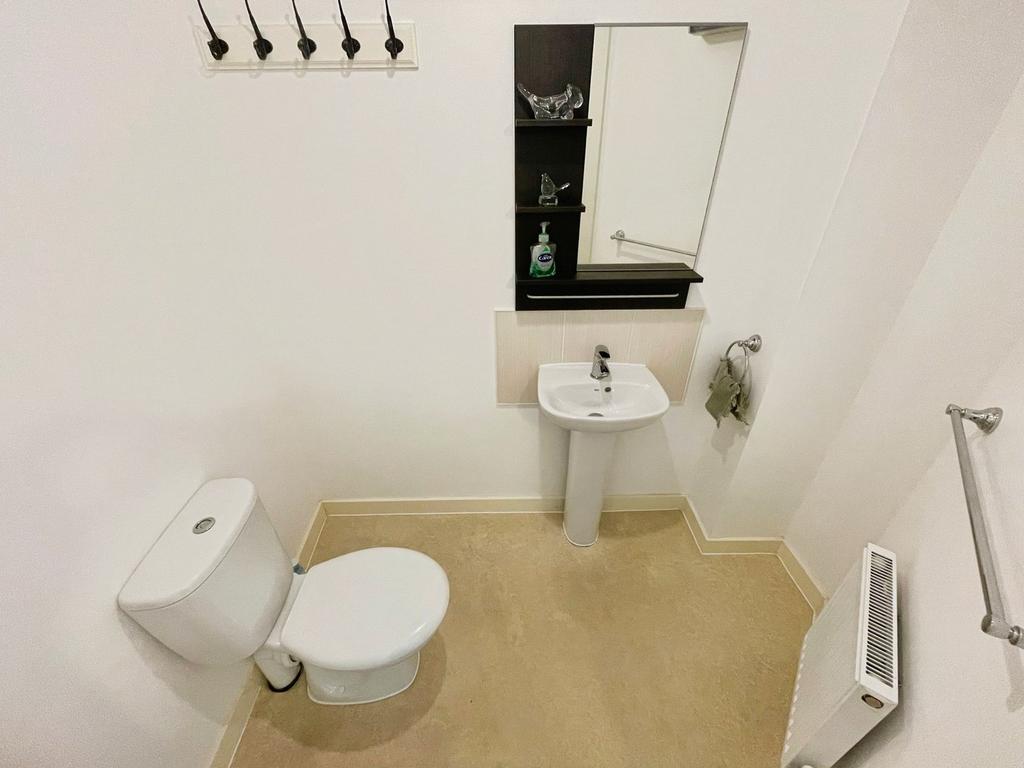 1.29m x 2.05m (4' 3" x 6' 9") Plastered and emulsioned ceiling with centre light, extractor fan, plastered and emulsioned walls with tiling to the splashback areas, skirting and vinyl flooring. Two piece suite comprising low level w.c.and wash hand basin with chrome mixer tap. Wall mounted mirror with shelving and radiator.