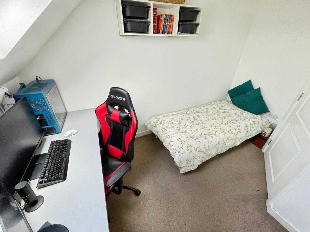 2.09m x 3.37m (6' 10" x 11' 1") Plastered and emulsioned ceiling with centre pendant light, wooden framed double glazed velux window to the rear of the property. Plastered and emulsioned walls, skirting, fitted carpet and radiator.