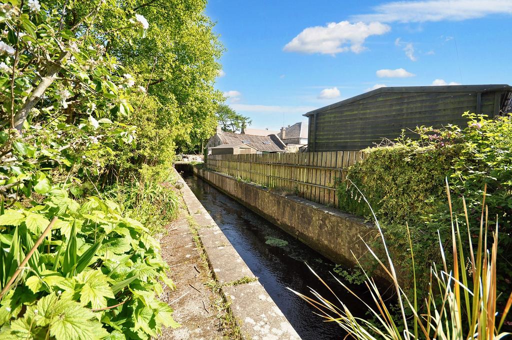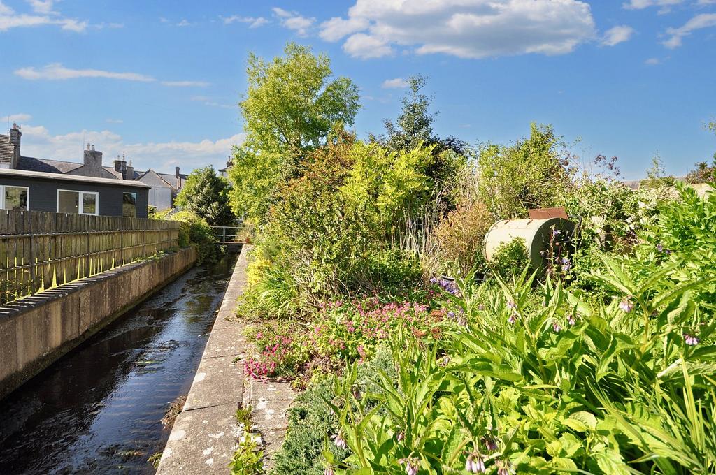 Generous sized garden grounds to the rear of the property stretching alongside a local burn providing a tranquil retreat. Comprising of a raised decking area leading down to concrete slab patio/ pathway leading down surrounded with mature planting borders and shrubbery. Garden shed and greenhouse also with fenced borders.