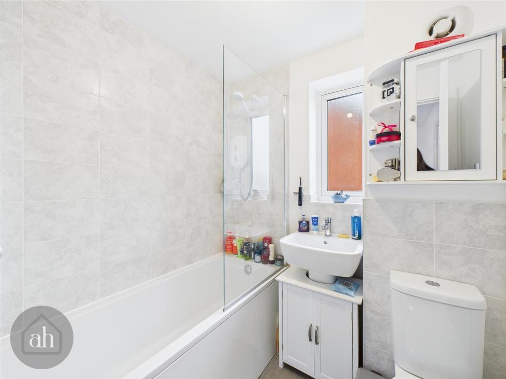 Bathroom - 8' 1'' x 5' 7'' (2.46m x 1.69m) - Modern suite with bath with electric shower over, W.C, wash hand basin, heated towel rail. Window to side