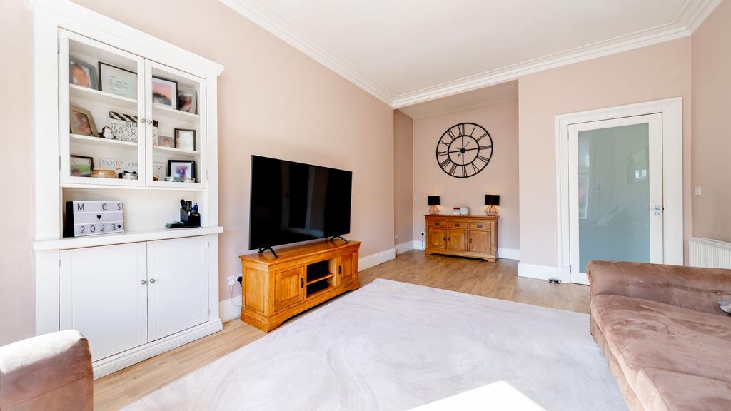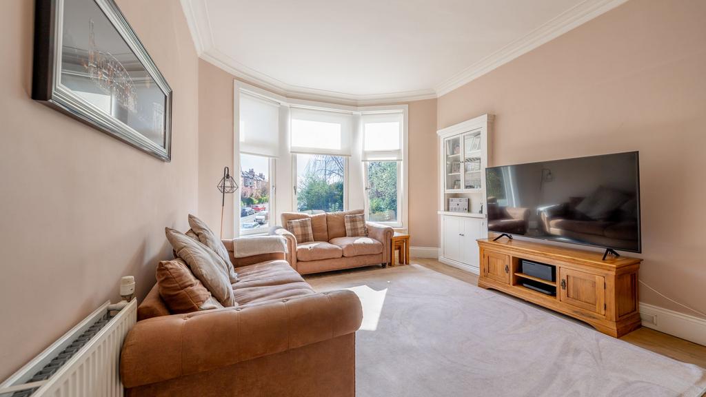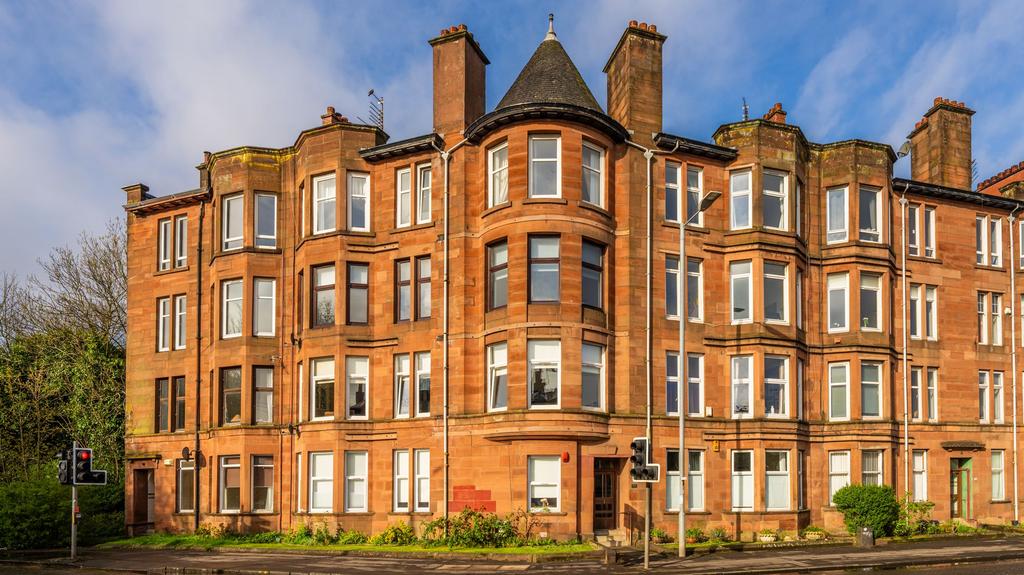 This wonderful flat is held on the preferred first floor of a particularly handsome red sandstone tenement positioned on the corner of Kings Park Road, adjacent to Kings Park Avenue. The building itself is found in wonderful condition and boasts a plethora of period features, which is common for those who are familiar with the various pockets of South Side architecture.