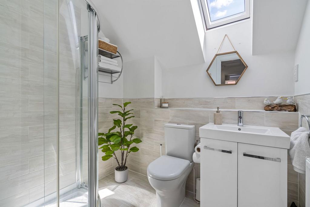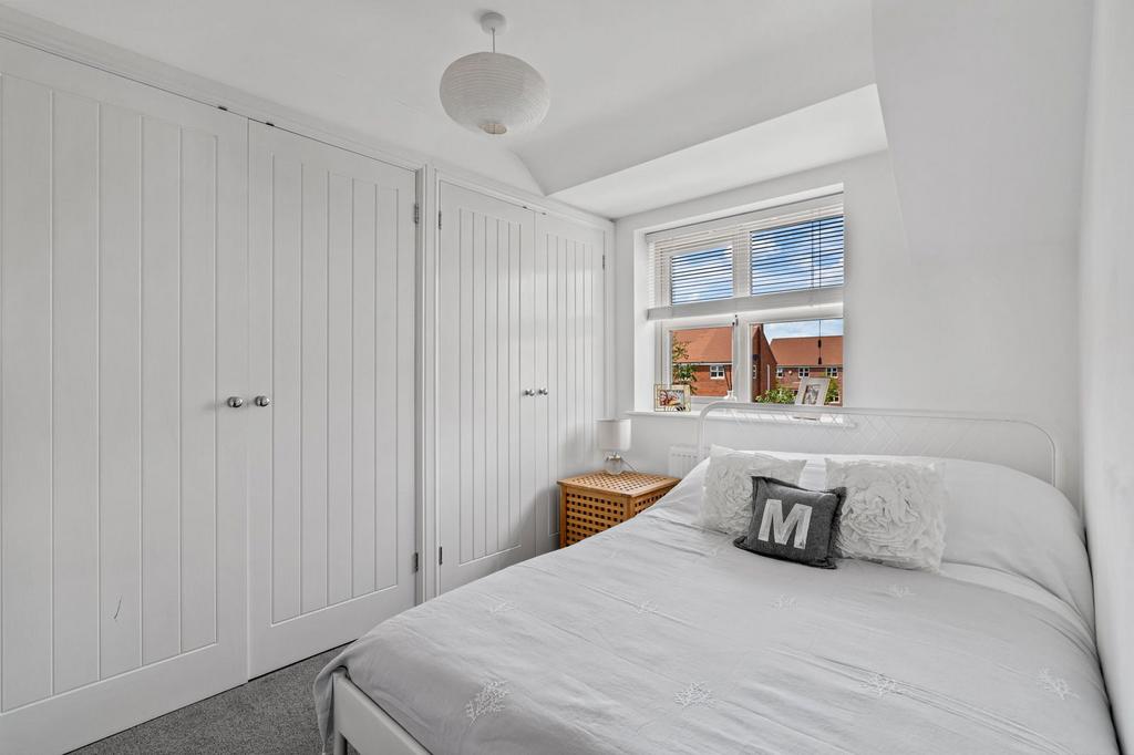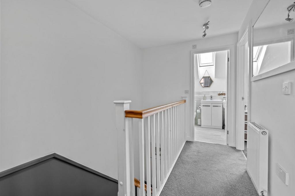 The property offers three well-proportioned bedrooms; the master bedroom benefits from built-in wardrobes and an en-suite, while the second bedroom is a double with built-in wardrobes. The third bedroom is a generous single room and could also be utilised as a study. On the landing, there is a clever "Light tunnel" providing amplified natural light from the outside. There is also a main bathroom fitted with a walk-in shower. The kitchen is a bright and airy space with natural light flooding in, offering ample dining space.