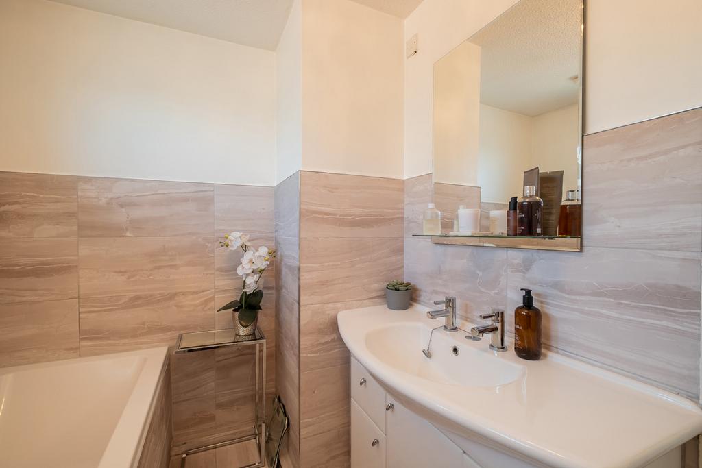 Upstairs, the main bedroom features a sleek en-suite shower room, with two further double bedrooms and a contemporary family bathroom.