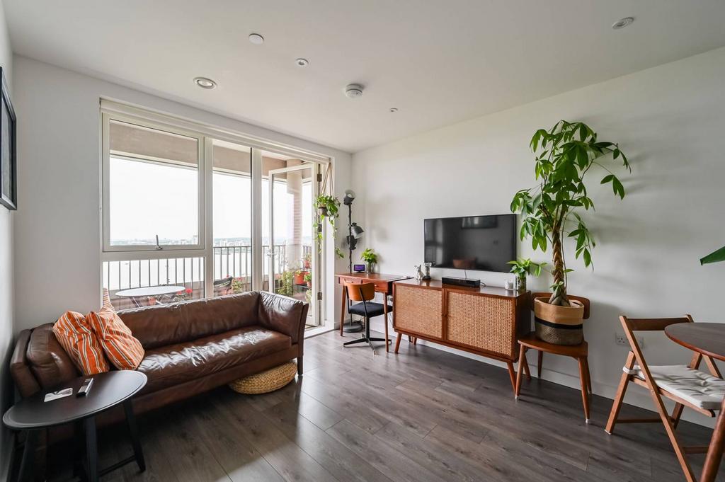 Amazing 1-bedroom flat boasting spacious south-east-facing interiors, storage, a sleek bathroom and a stunning open-plan reception with a fully fitted kitchen leading to a large balcony with views of the River Thames.