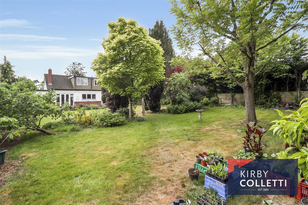 Rear Garden - 108 ft deep. Paved patio area with remainder laid to lawn. Mature shrub borders. Access to rear of garage. Side pedestrian access.