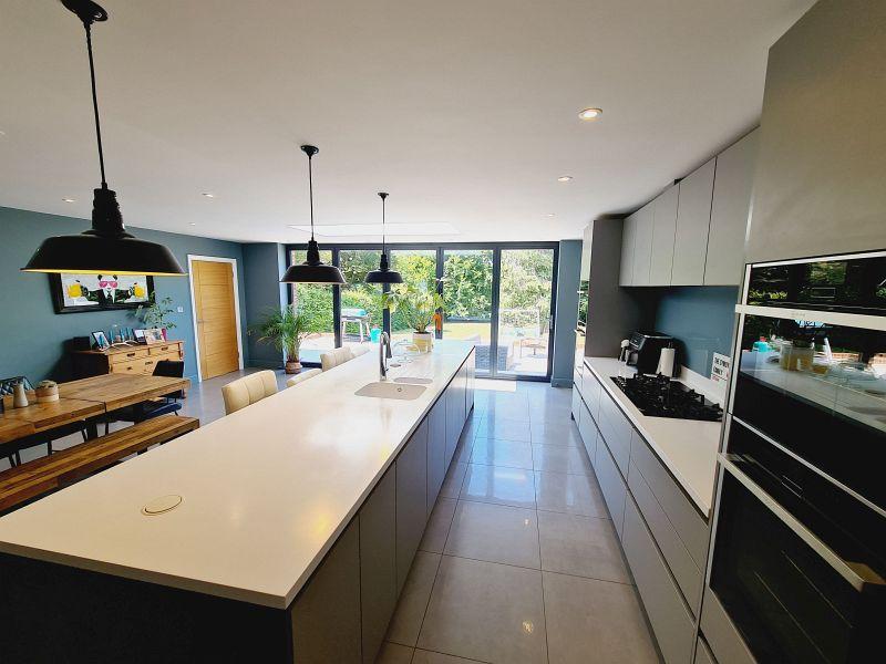The property is A STUNNING DETACHED FAMILY HOME which has been extended and completely renovated throughout in 2020 to a very high standard to offer superb family accommodation, ideal for modern day living. Located in one of the area's premier residential private roads approximately one mile from Leatherhead town centre and station. Also within easy reach of Fetcham and Bookham Village centre's, which offer a range of local shops for everyday needs and also close to Fetcham Infants School and Oakfield Junior School. The property occupies an excellent plot extending to approximately a third of an acre with wide road frontage and large established rear garden. The accommodation is beautifully presented and offers a large welcoming reception hall, ground floor cloakroom, study, drawing room opening into a dining room. There is an exceptionally spacious kitchen/breakfast room at the heart of the house which has a considerable wow factor with adjacent family/games room all opening onto a full width paved patio which overlooks the garden. The kitchen provides an excellent range of contemporary handleless design units, two double ovens with one incorporating a microwave, integrated dishwasher, corian work surfaces and large island/breakfast bar plus a useful utility room. On the first floor there is an impressive principal bedroom suite with vaulted ceiling, separate dressing area and luxury en suite bathroom with freestanding bath and walk in shower. A guest bedroom is served by another luxury en-suite shower room and then there are three further double bedrooms and a luxury family bathroom. The property has been finished to a very high specification with hard wired ethernet cabling, under floor heating to the ground floor, engineered oak floors and Duravit sanitary ware. All principal rooms enjoy a delightful outlook over the rear garden and all bedrooms have fitted wardrobes. Outside there is an in and out carriage block paved driveway which provides ample parking and gives access to the garage. Side pedestrian gate leads to the secluded rear garden which is a lovely feature of the property and extends to approximately 150 ft in depth, mainly laid to lawn. An internal viewing is strongly recommended to fully appreciate this particulary spacious and beautifully presented family home.