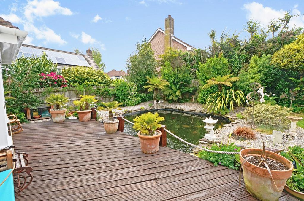 Outside there are well maintained generous sized gardens, which are predominantly laid to lawn, with established flower beds and borders giving complete privacy. There is a paved seating area outside of the conservatory as well as a decking area overlooking a large pond, providing a tranquil spot for relaxing after a long day. There is access to both sides of the property. The garden benefits from electricity points and outside water tap.