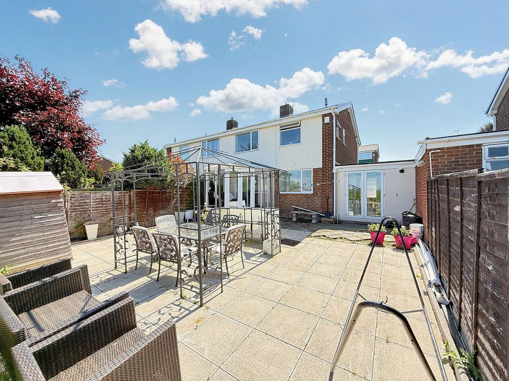 - Low-maintenance, generously sized rear garden with patio area and storage shed