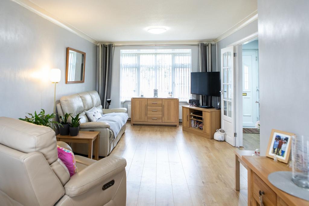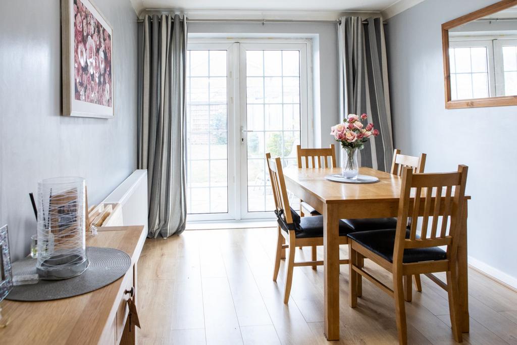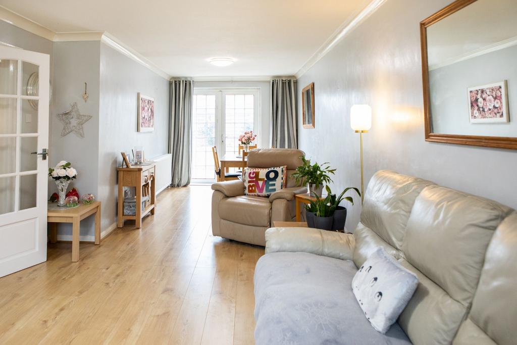 * Lounge/dining room with laminate oak flooring. Double doors opening onto patio and sunny west facing garden.
