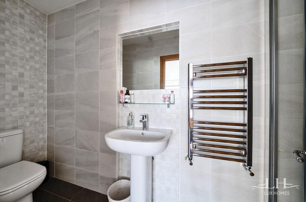 As we enter the property, we are greeted with a spacious hallway which leads us to the large show stopping family room which is placed towards the left of the property allowing for peaceful views over the garden via the French Doors, which has been designed in a neutral cream colour palette creating a cosy feel throughout. Continuing back through the hallway we are presented with a large formal dining room, allowing for those formal mealtimes at special celebration occasions with family and friends. At the heart of the property lies the kitchen. The kitchen is Clive Christian and is a classic Oak wood finish with complimentary granite worktops to match, with Oak coloured storage cupboards, finished with silver accents. There is also a seating area perfect for those evening meals, thus in turn creating an incredibly welcoming area to host family meals and take in the views over the garden via the bi fold doors after our working day. Leading from the reception we are greeted a utility area, finished with the same colour scheme, fitted with built in appliances and an abundance of storage. The garage is accessible from the utility room which is used for storage by the current owners. Heading back to the hallway we have a modern downstairs WC which you will find next to the utility room and storage area to complete the ground floor.