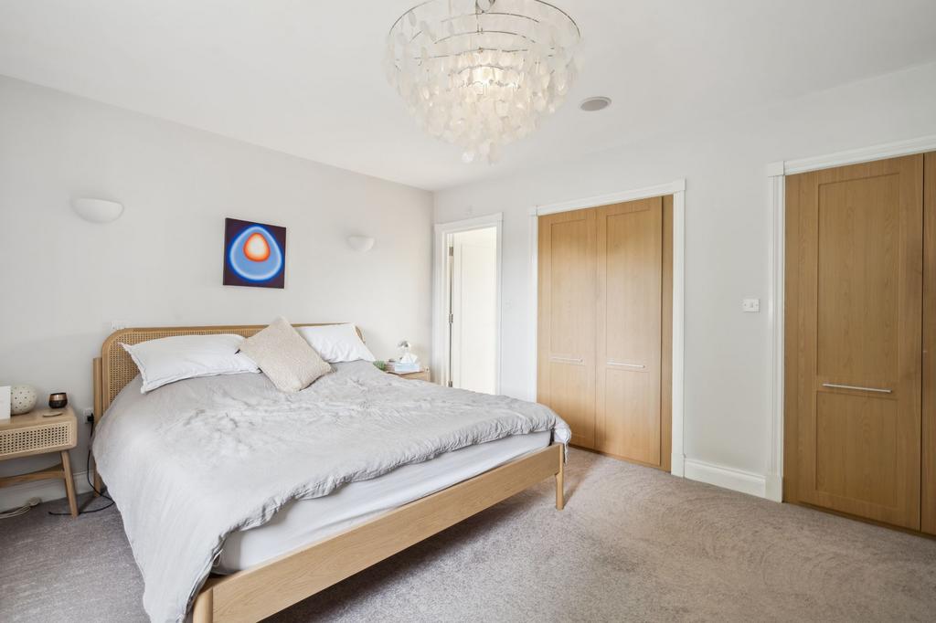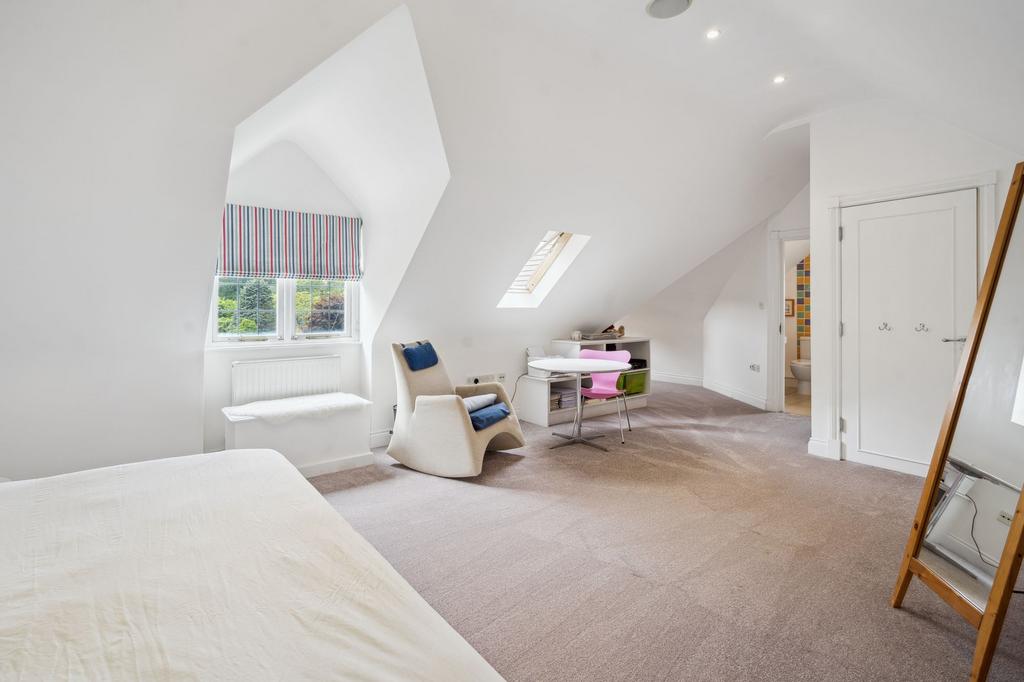 Upstairs, the principal bedroom includes fitted wardrobes and a luxury en suite. Two further double bedrooms (one en suite) and a family bathroom complete this floor. There's also a loft room and a large top-floor suite suitable as a guest room, gym, or cinema.