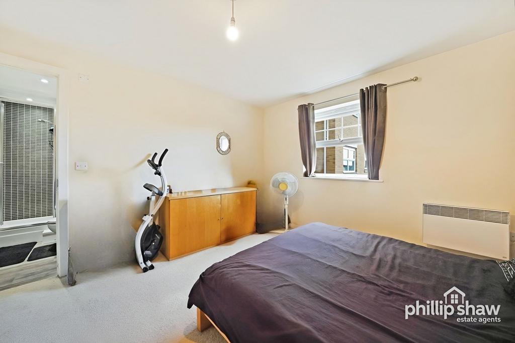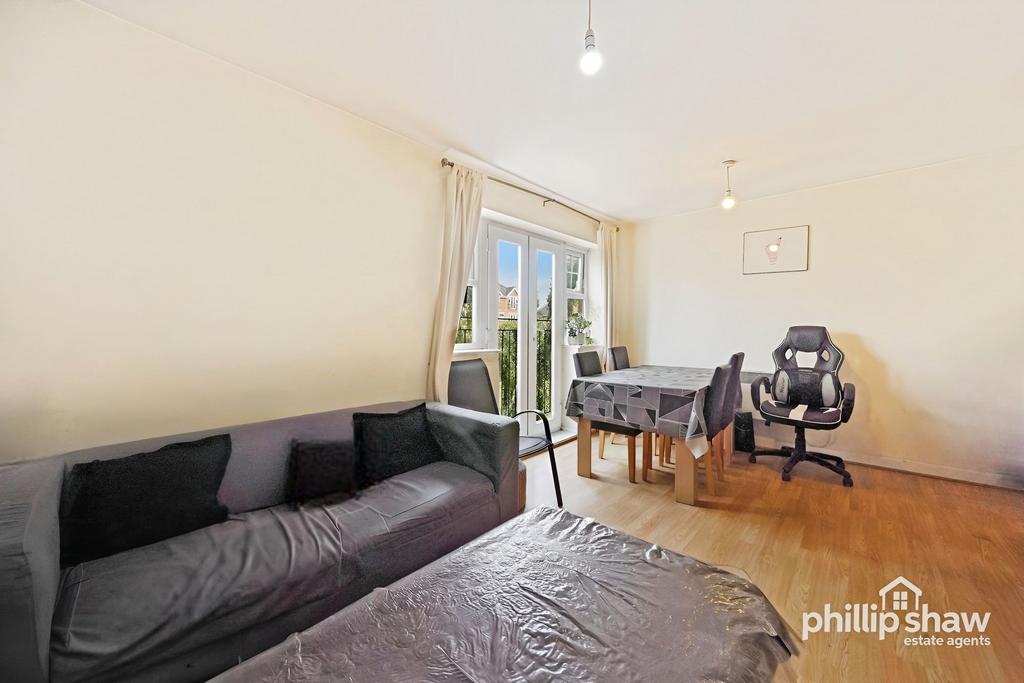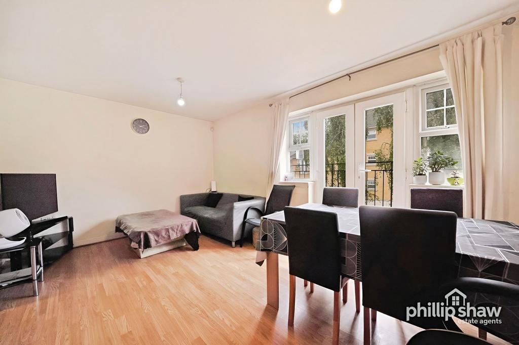 Inside, a hallway connects all the rooms. There are two spacious double bedrooms, one with its own ensuite shower room and a separate bathroom. The large reception room has space for dining and relaxing, with big doors opening onto a Juliet balcony that lets in plenty of natural light. The kitchen is fully fitted with modern appliances and lots of storage, making it both practical and attractive.