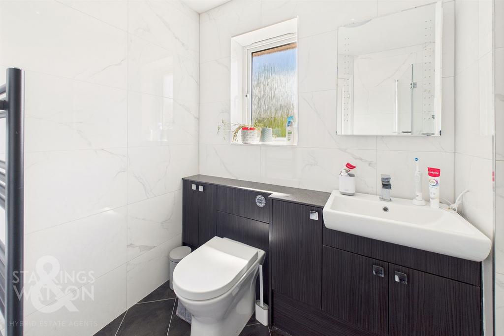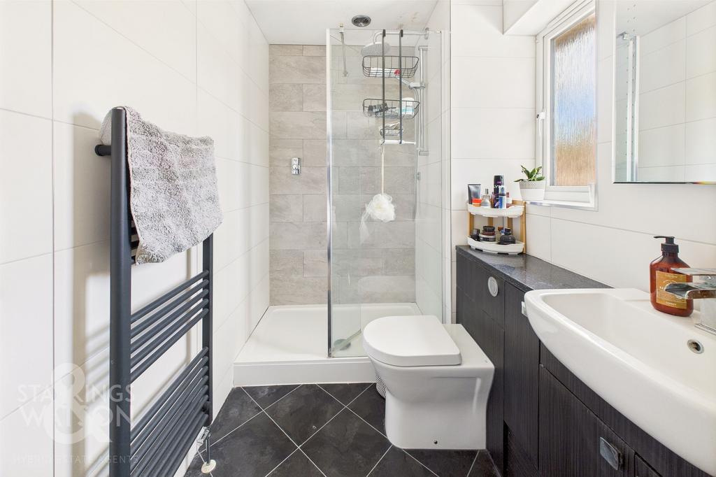 The first floor landing splits to allow access into four bedrooms as well as a handy built in storage cupboard and three piece family bathroom suite featuring a rainfall shower head and glass screen mounted over the bath with modern tiled surround, vanity storage and heated towel rail. The larger of the bedrooms comes towards the left hand side of the landing featuring floor to ceiling fitted wardrobes. This space overlooks the rear garden and benefits from the use of an en-suite shower room again with updated tiling and rainfall shower head mounted above with heated towel rail and vanity storage. On the same side of the property the smaller of the bedrooms can also be found. This space can still house a double bed due to having built in wardrobes. The adjacent side of the home offers a further two double bedrooms with the smaller facing the front of the home with all carpeted flooring and front facing window whilst the slightly larger sits towards the rear with another set of built in wardrobes and large open carpeted floor space.