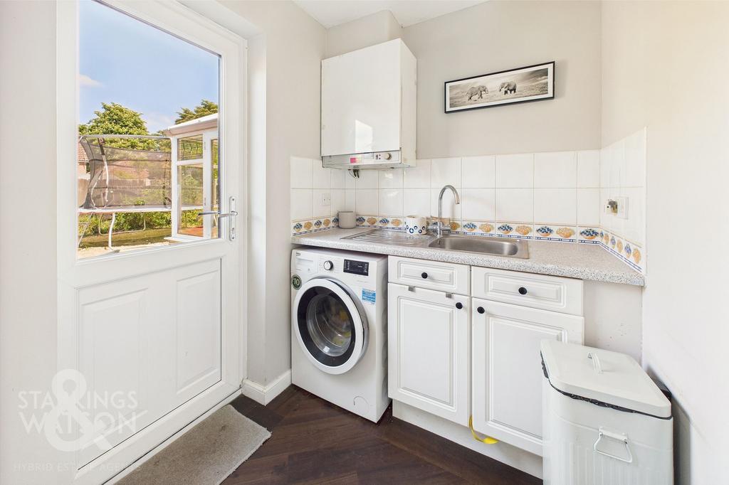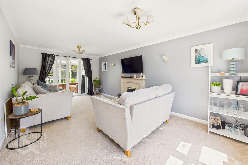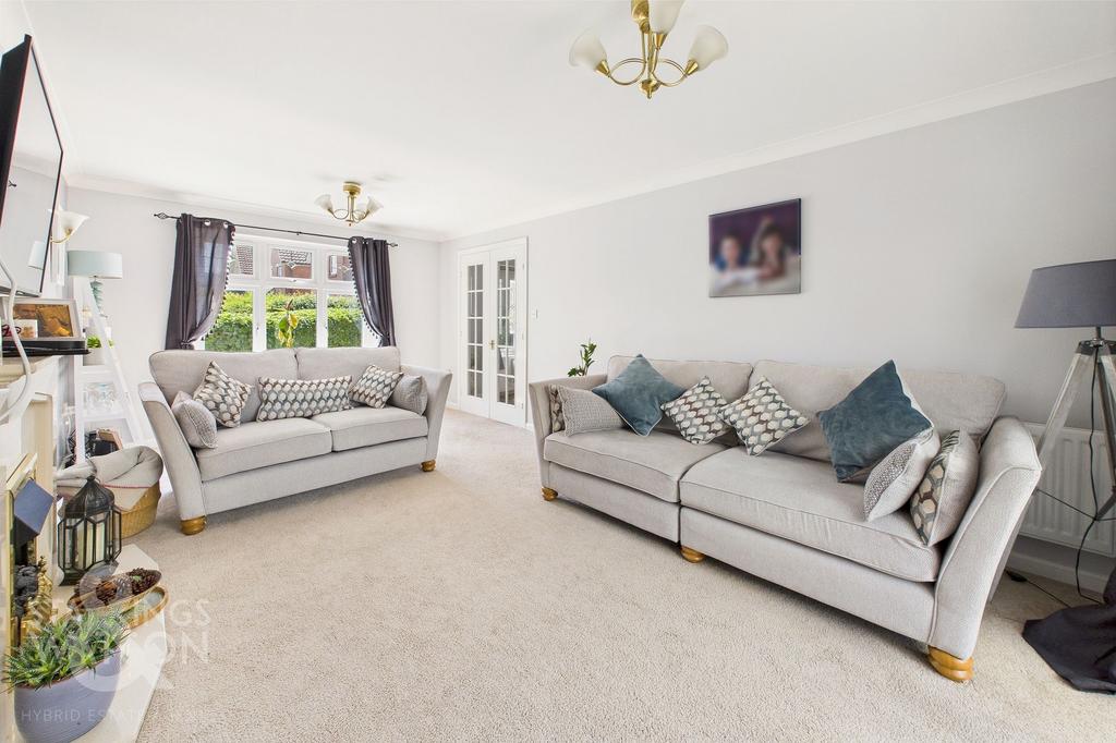 Once inside, the central hallway allows access to all living accommodation within the ground floor as well as stairs for the first floor and ground floor WC with low level wall mounted radiator and frosted glass window to the front. The wooden effect flooring takes you through to a separate dining room initially on your left hand side with front facing window and low level radiator. This first space is ideal to house a formal dining table or potentially used as a snug sitting room or playroom for busy families. Sat just behind this is the kitchen with a mixture of wall and base mounted storage units with integrated oven and hob and extraction above. Within this space there is also room and plumbing for a standalone dishwasher whilst the utility room flows freely just behind this with space and plumbing for a washing machine, inset chrome sink, wall mounted oil boiler and door into the rear garden. The adjacent side of the property houses a 19’ open sitting room complete with the dual facing aspect allowing natural light to flood the room at all hours of the day. The large carpeted floor space is conducive to a potential choice of layouts of soft furnishings whilst uPVC double glazed French doors take you through to a bespoke built conservatory making an ideal secondary living area with French doors taking onto the rear garden patio.