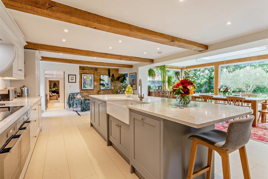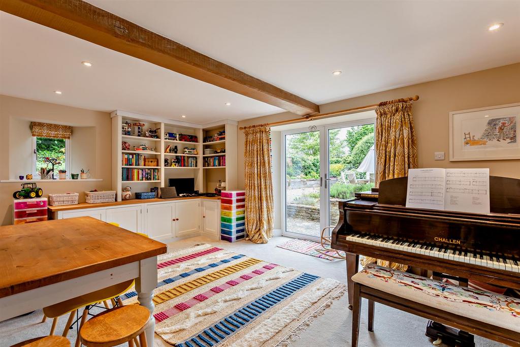 Further Accommodation - The property benefits from an extensive range of outbuildings, including a striking vaulted space of approximately 46 feet in length, currently used as a games room/gym but could be utilised in a variety of ways. This impressive room features two sets of French doors opening onto the walled garden, creating a seamless indoor-outdoor connection. Adjoining this space is an entrance hall that leads to a utility/laundry room, a modern shower room, and a workshop. A spiral staircase rises from the hall to a superb first-floor office with a bespoke fitted, oak fronted storage/filing units and a dual-aspect flooding the space with natural light—an ideal setting for home working or creative pursuits. Additionally, there is a potting shed, wood store and a greenhouse.