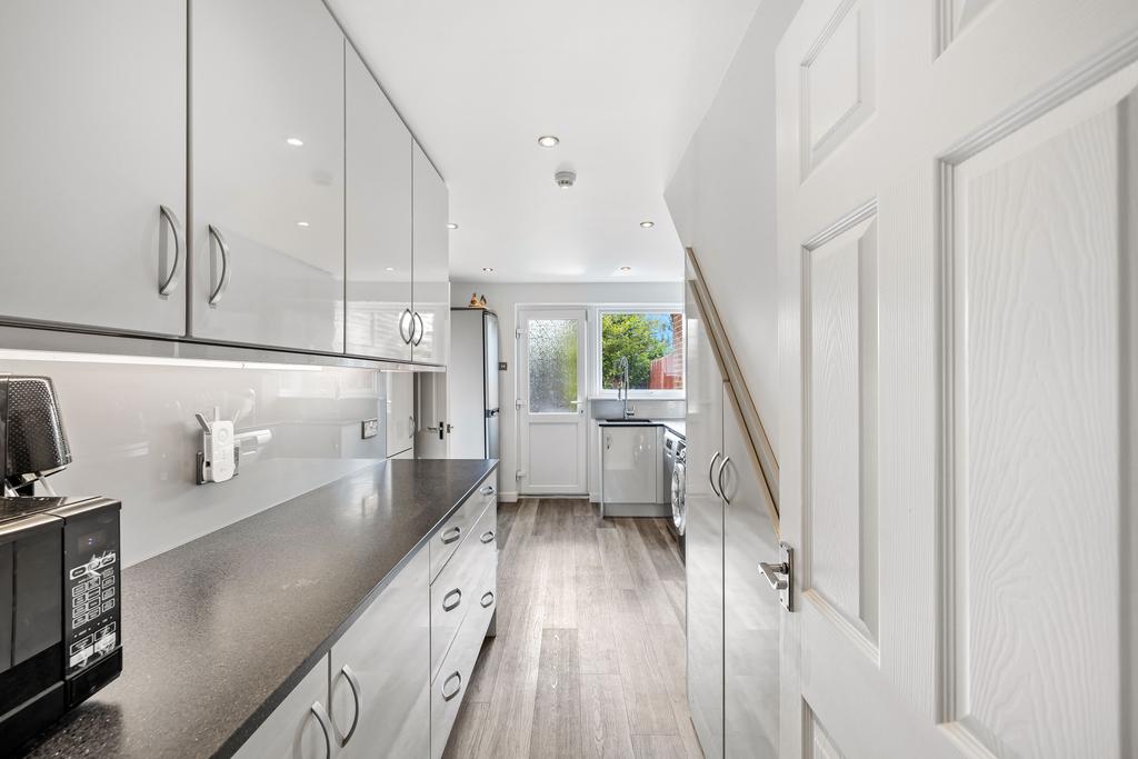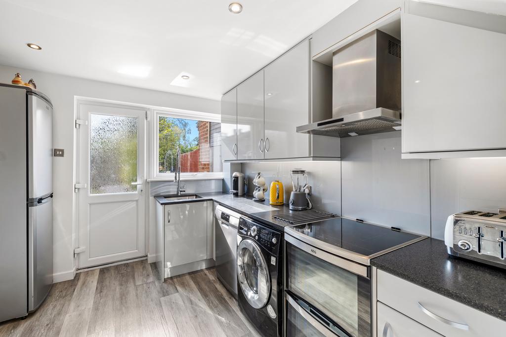 Step into a bright and welcoming entrance hall that leads through to a generously proportioned dual-aspect lounge/diner, complete with direct access to the garden - perfect for summer entertaining. The sleek high-gloss kitchen has been thoughtfully designed with ample worktops and access to the rear.