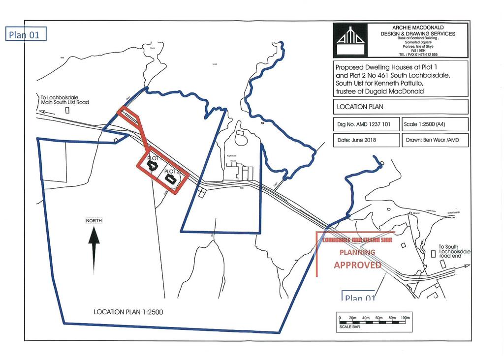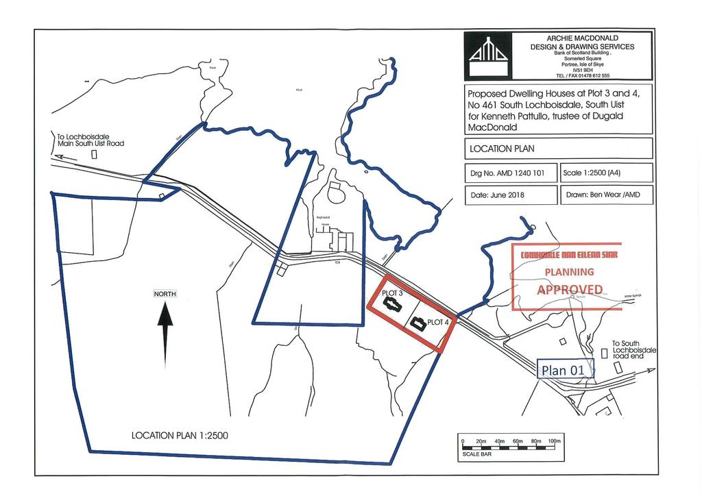 Detailed planning permission for four individually designed houses has been granted by Comhairle Nan Eilean Siar under planning reference 22/00257 and 22/00258 on 7th December 2022.