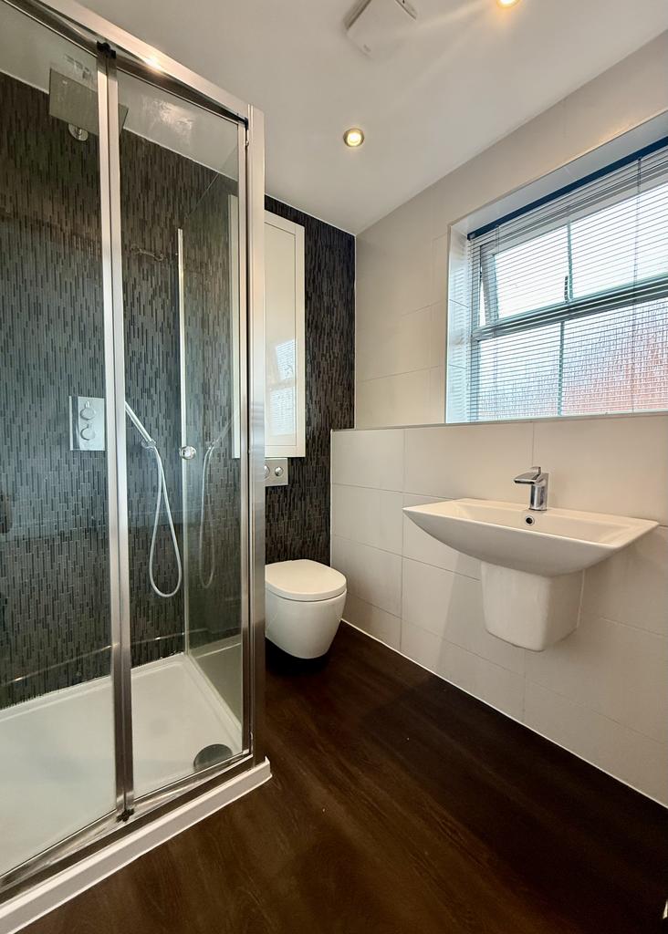 On the top floor are the remaining 3 bedrooms (one front facing, two rear facing) and the family bathroom which comes with a white 3 piece suite and shower over the bath. The room has hard flooring and tiled walls for easy maintenance.