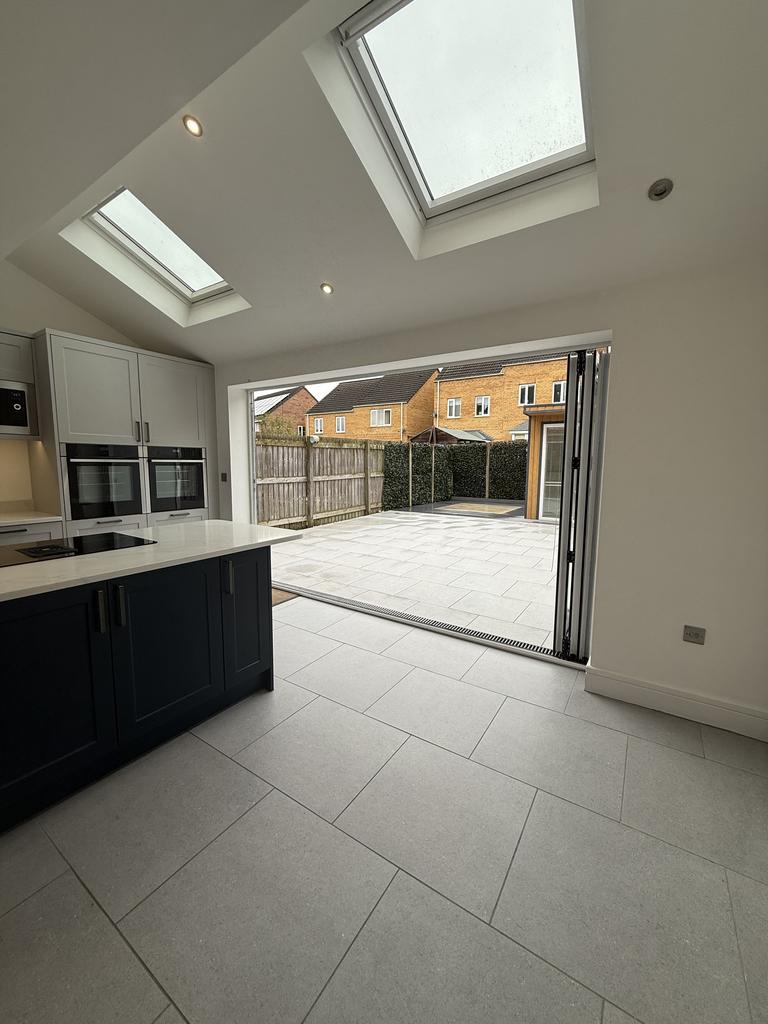 The kitchen also boasts many luxurious extras such as a Quooker tap providing filtered cold water and immediate boiling water, underfloor heating and a pop-up power bank in the breakfast bar. The room is very light and airy with skylight windows and large bi-folding patio doors opening up the entire back of the house into the rear yard.