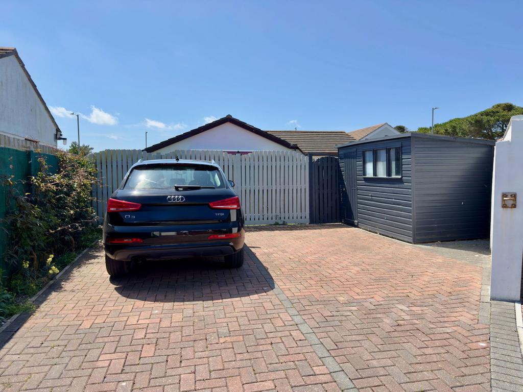 Large brick paved parking area offering excellent off road parking together with useful timber garden shed.