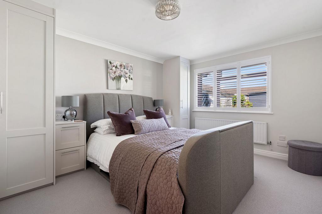 Double glazed window in uPVC frame to the rear with fitted shutters, range of built in wardrobes, radiator.