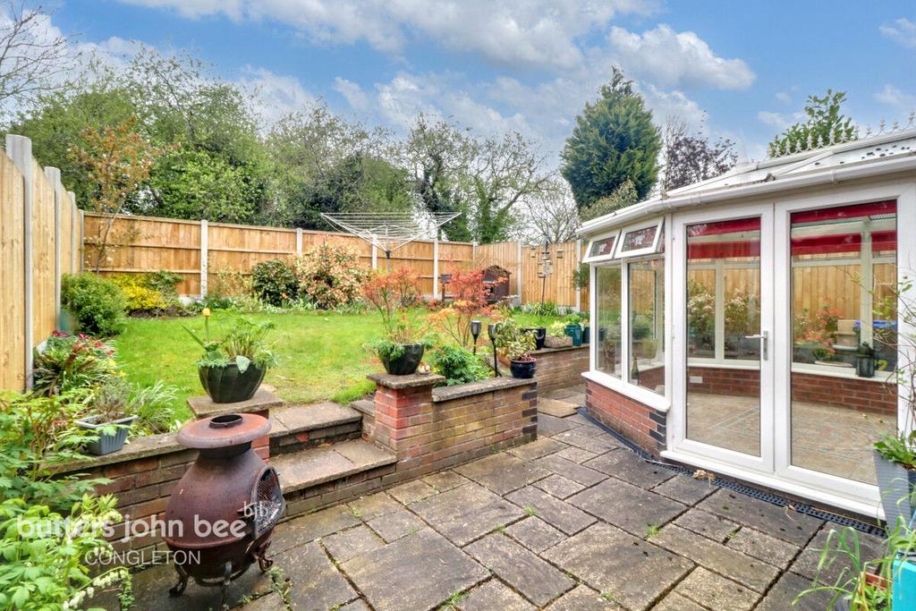 Externally, the property offers a flagged driveway for two vehicles, a neatly maintained front lawn, and a beautifully landscaped rear garden with a patio area, lawn, stocked borders, and scenic views over the bridle path and wooded area beyond – perfect for relaxing or entertaining.