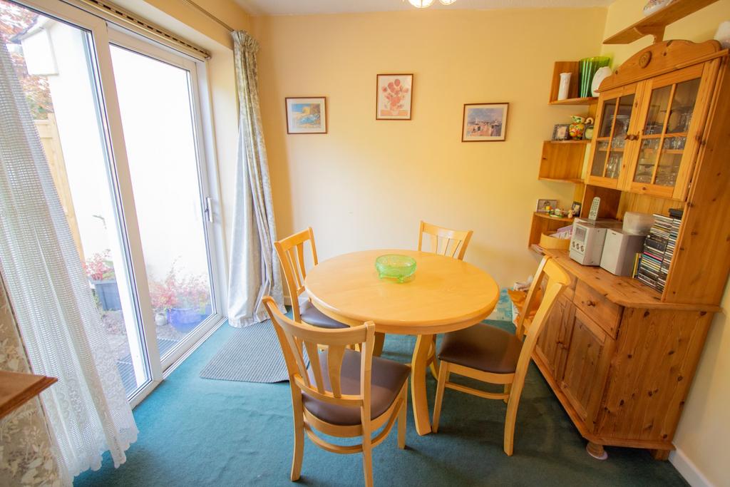 The accommodation comprises: entrance porch, cloakroom, spacious living room with deep window sill and door through into the dining room which has patio doors into the rear garden, the dining room opens into the kitchen, which has wall and base units and worktop surfaces. On the first floor there are 3 bedrooms; the main bedroom has one wall of sliding door wardrobes, there is also a bathroom suite.