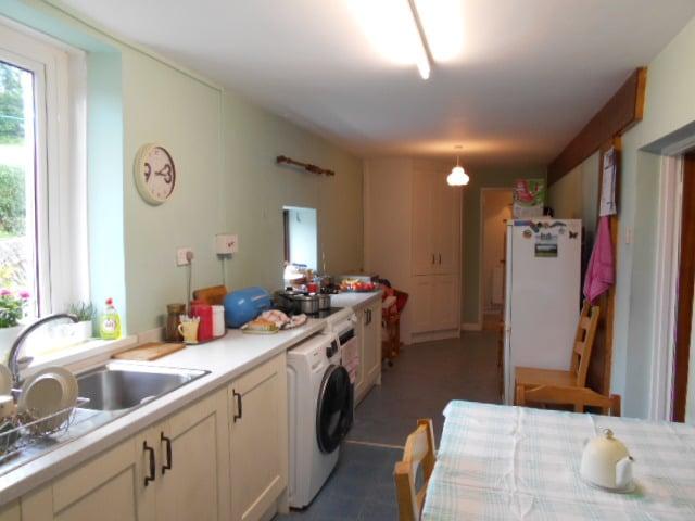 Approx. 8' 0" x 28' 8" (2.44m x 8.74m) Galley style kitchen. Fitted base and wall units. Single drainer sink unit. Plumbed for washing machine. Inset kitchen cupboard. Radiator. Overlooking rear lawn. Door to: -