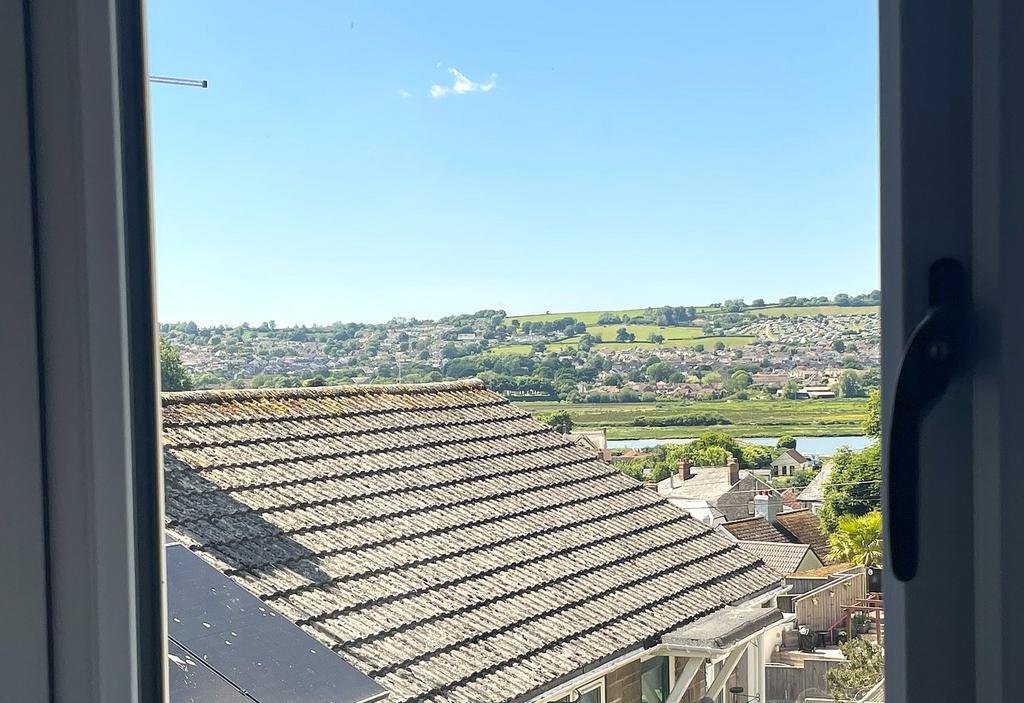 Window to side, offering beautiful views of Axmouth and the hills beyond the Axe Valley. Radiator. Doors off to two double bedrooms, one single bedroom, a family bathroom and a separate WC. Stairs to second floor, where there is a further double bedroom.