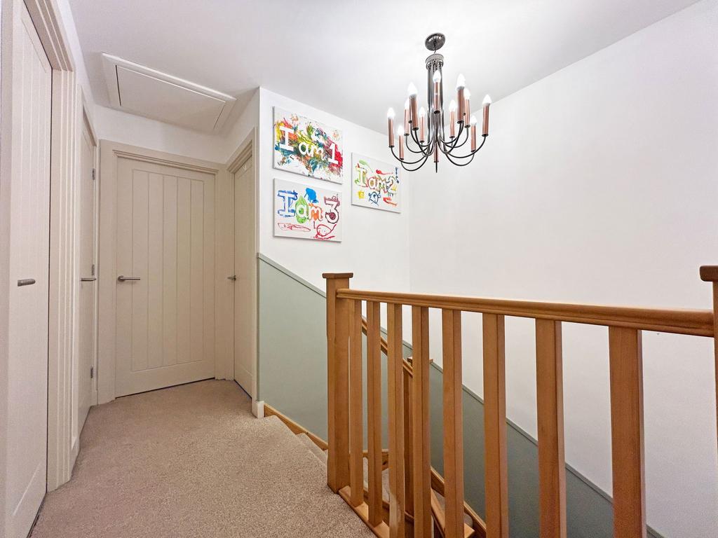 Landing - Having central heating radiator, access to the roof space, chandelier over the staircase, Airing cupboard housing the hot water cylinder with programmer.