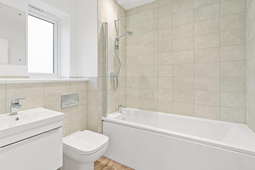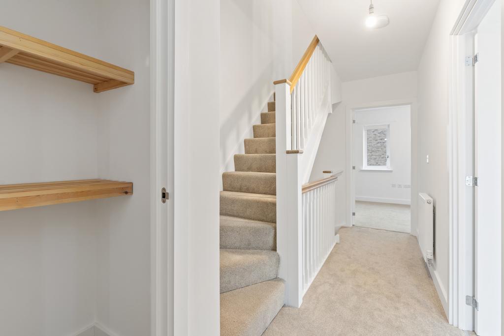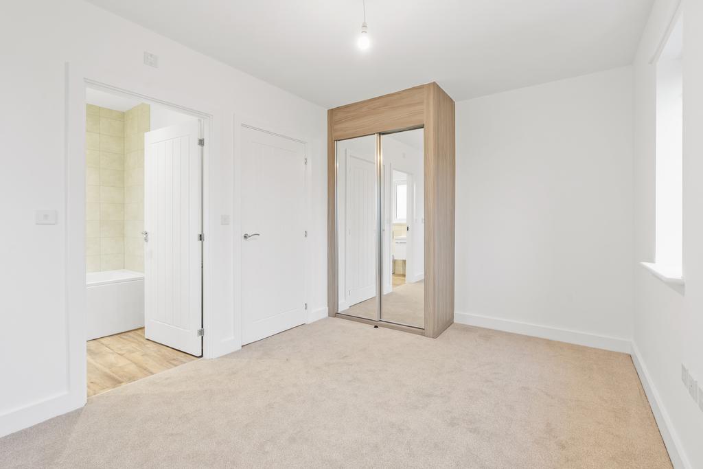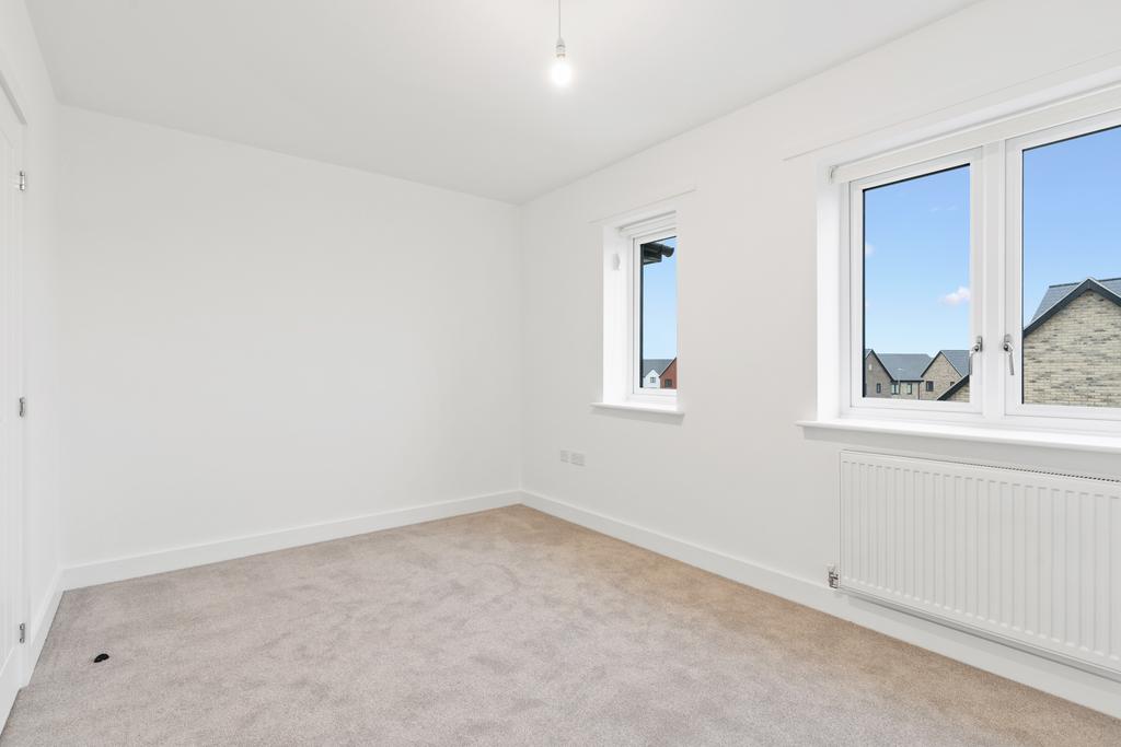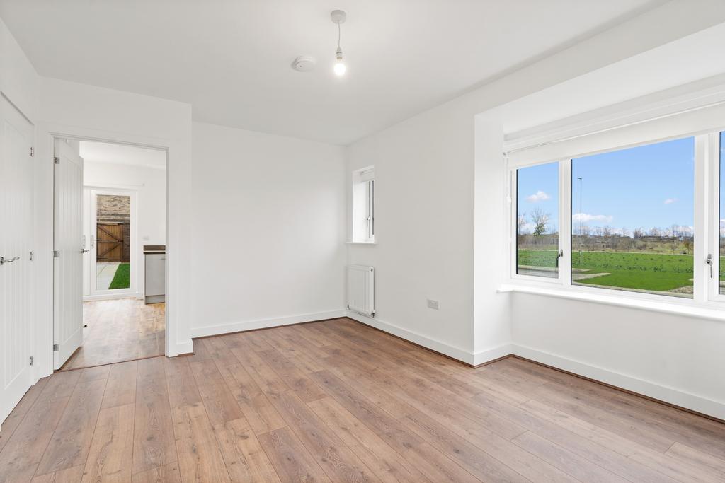 On the second floor, there are a further 2 double bedrooms. The front facing bedrooms have large windows and balcony rails, providing excellent views over the open green space at Alconbury. There is also a family bathroom with shower over bath on this floor.