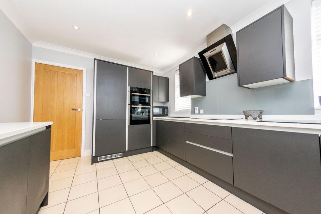 THE KITCHEN IS BRIGHT AND MODERN WITH A HIGH-QUALITY FINISH. YOU'LL FIND TOP-OF-THE-RANGE INTEGRATED APPLIANCES, INCLUDING A FRIDGE FREEZER, DISHWASHER, BUILT-IN OVEN AND INDUCTION HOB. THIS IS A STYLISH YET PRACTICAL SPACE PERFECTLY SUITED FOR MODERN FAMILY LIVING.