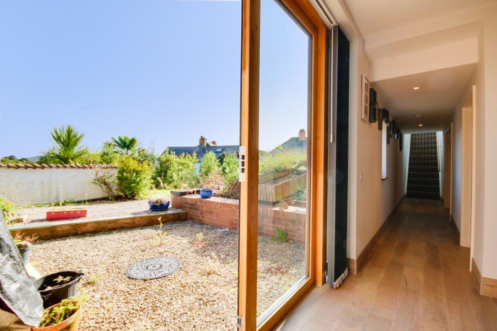 There are details here that always impress, Swedish pine window frames provide a softness and quality to the double-glazed windows, many are tilt and turn. Cedarwood adds further softness as you look at the rakish roof line designed to create cover whilst creating openness. Bi-fold doors open across the living room to connect you with the wonderful view in a way little else can compare with. Stylish internal doors match again adding to that air of quality throughout and some, slid back into the walls, may surprise you when you see them finally.