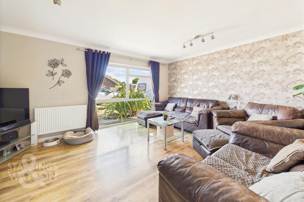 Set back from the road and approached via a shingled front garden with a variety of planting, twin hard standing driveways offer ample off road parking with a detached garage and adjoining single garage. Gated access leads to the rear garden, whilst a brick-weave pathway takes you to the main entrance door.