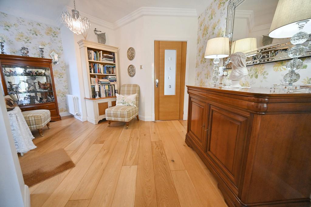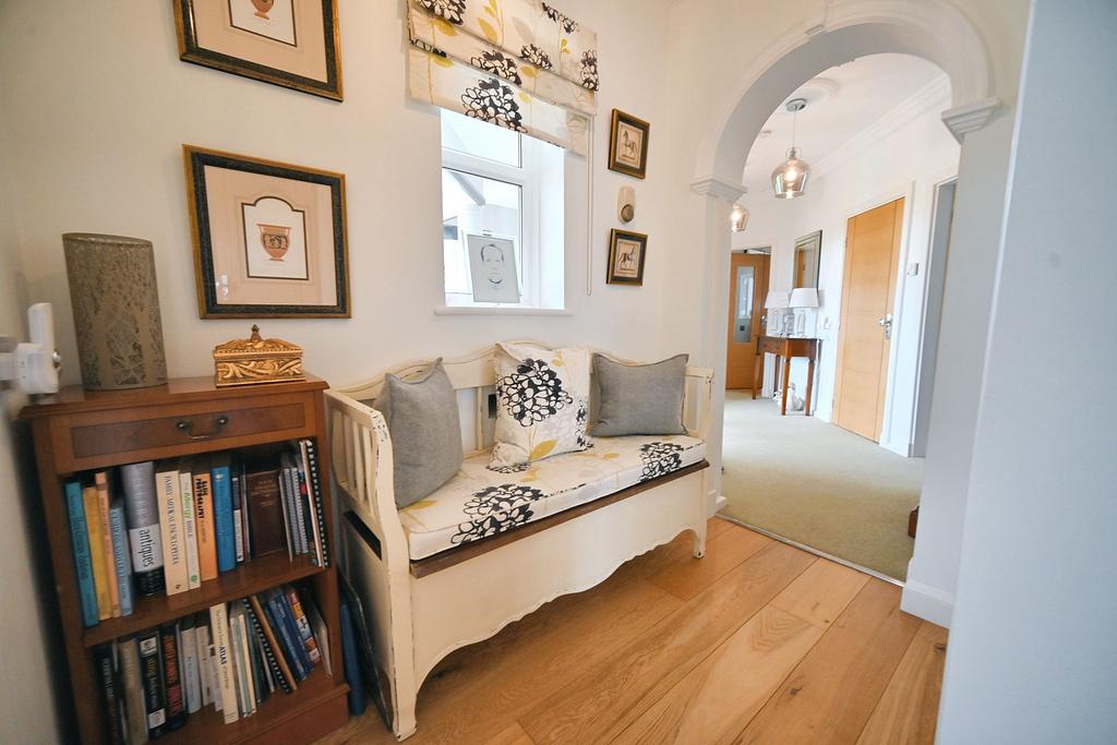 Inner Hall: Period style coved ceiling, engineered wood flooring with underfloor heating, and double glazed window to front.