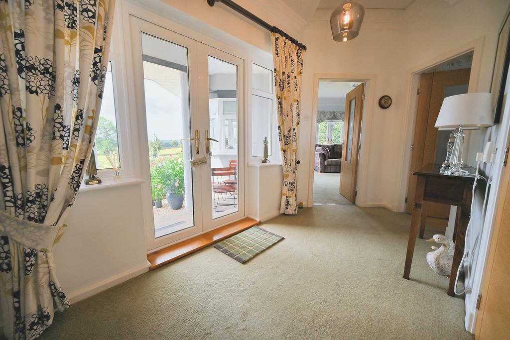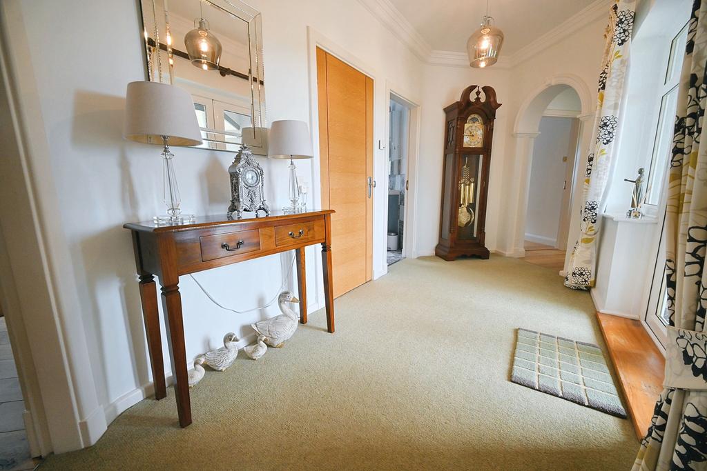 Entrance Hall: 16ft (4.88m) x 5’9’’ (1.75m) PVC double glazed double doors with matching side windows, built in cloaks cupboard, period style coved ceiling, underfloor heating and loft hatch with pull down ladder to attic space/ room.