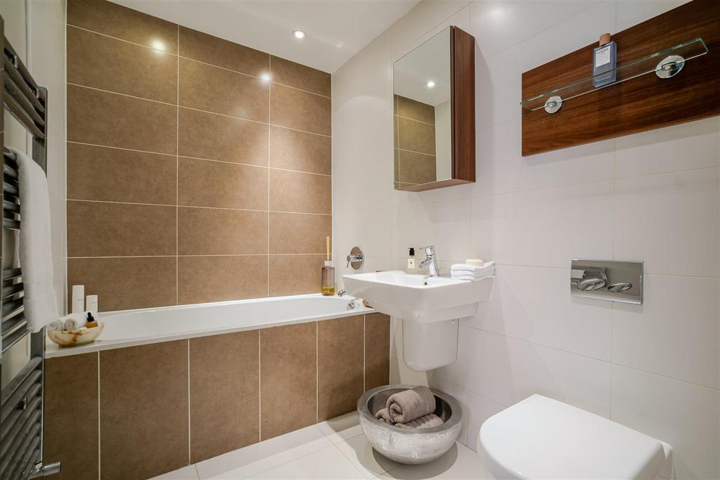 This modern ground floor apartment has an open-plan living room and kitchen with a breakfast bar, principal bedroom with bespoke fitted wardrobes and an en suite shower room, second double bedroom with bespoke fitted wardrobes, and a bathroom.