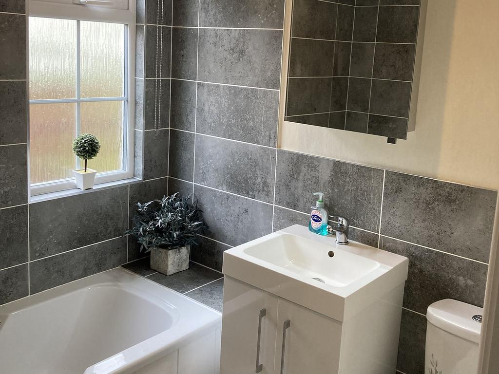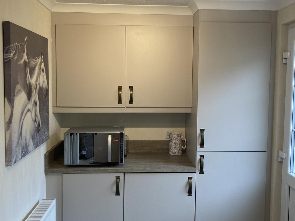 - Fitted kitchen with integrated appliances and a north facing privacy window
