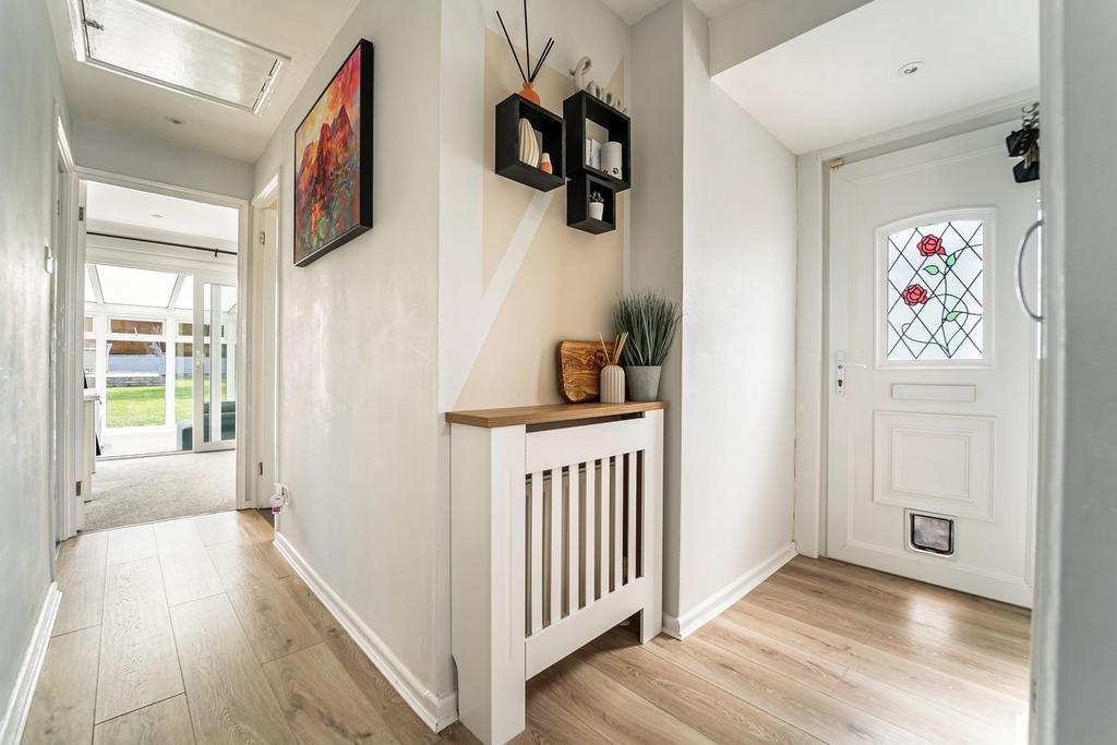 HOUSE FOX ESTATE AGENTS PRESENTS ... This superb semi detached bungalow has been extensively updated in its current ownership and offers 2 bedrooms, conservatory, a good sized living room, parking, garage and a generous rear garden. The property is approached via the driveway/garage and a pathway leads to a walled front garden area with the property front entrance having a useful porch for keeping dry. The entrance hall then has doors to all rooms and also has a storage cupboard. The kitchen to the front offers a range of wall and base units with worktops over, induction hob with extractor hood over and eye level electric oven, space for washing machine and integral fridge freezer and an inset stainless steel sink/drainer. The great sized living room is currently to the front of the property but this could easily be moved to bedroom 1 as they are near identical sizes and then a great addition would be to install French doors to the rear garden (and maybe extend across the conservatory!). Both living room and bed 1 are great sizes with the master bedroom having the advantage of 2 built in cupboards. Bedroom 2 is to the rear of the house and has patio doors out to a conservatory which leads to the rear garden. The family bathroom offers a white suite of WC, wash basin and a large shower. Outside to the front there is an area of lawn in front of the bungalow and driveway parking leading up to the single garage and a pathway leads into the front courtyard where there is a timber door leading into a covered area to the side of the property. The rear garden is a great size and has been extensively developed with areas of lawn and patio.