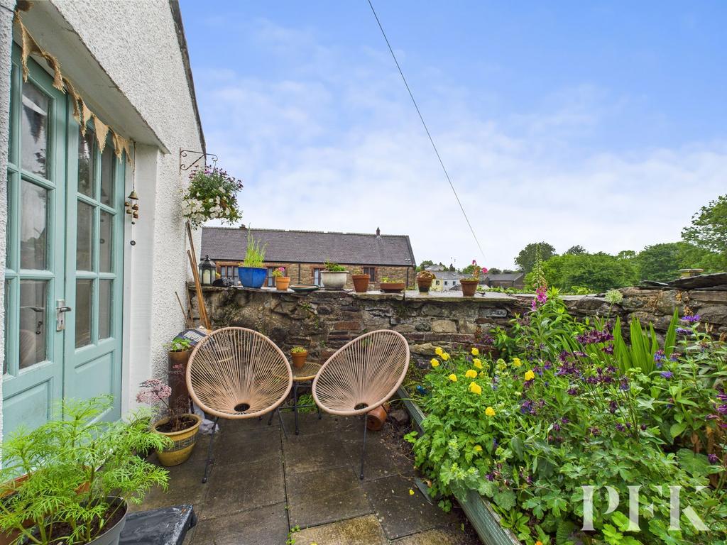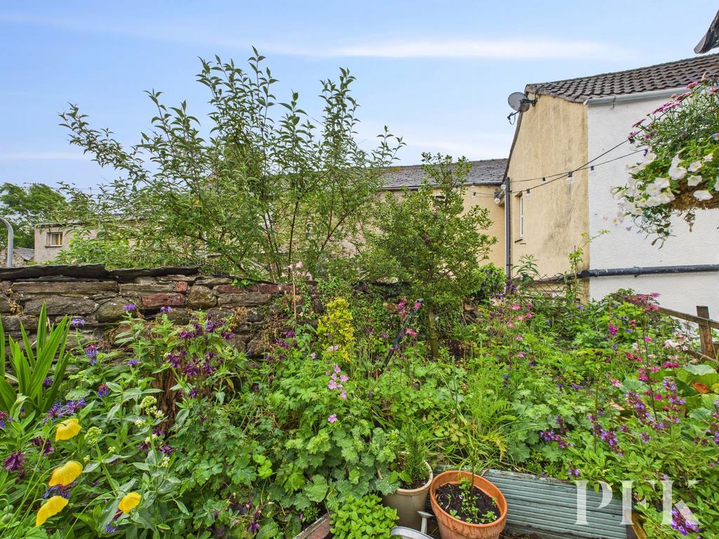 A delightful roof terrace located outside bedroom two, offering space for seating and relaxation. The charming cottage style garden is planted with a variety of shrubs and flowers and offers potential for a vegetable patch. The garden overlooks Bitterbeck .