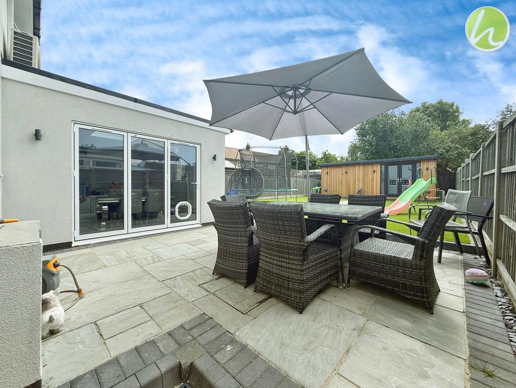 Guide Price £425,000 - £450,000 Welcome to this meticulously maintained 3 bedroom terraced house, an extended modern family home that has been renovated and improved throughout to offer a sublime living experience. As you step into the property, you are greeted by the wonderful living room adorned with a feature media wall, setting the tone for luxury and comfort. The dining room boasts a sky lantern and bi-folding doors, seamlessly merging indoor and outdoor living. The modern fitted kitchen is a chef's dream, featuring integrated appliances, quartz worktops, and underfloor heating for added convenience. With a utility room, separate WC, three double bedrooms with built-in storage, a beautiful family bathroom suite with underfloor heating, and air conditioning in the main bedroom, dining room, and cabin/office, every detail has been carefully considered to provide the utmost comfort and style. The outside space of this property is equally as impressive, with a landscaped design featuring an artificial lawn and stone patio, offering a serene setting for outdoor enjoyment and relaxation. The block paved drive, complete with bollards for added security, not only enhances the property's kerb appeal but also provides convenient parking for residents and visitors alike. This property truly embodies a bespoke lifestyle, where luxury meets practicality, and every detail has been thoughtfully curated to create a comfortable and elegant living environment. With its desirable location and impeccable features, this home is a rare gem that offers the perfect blend of sophistication and charm, making it an ideal investment for those looking to elevate their every-day living experience. Located within a short walk to local schools and amenities as well as Corringham town centre, for everyday convenience. Schedule a viewing today and step into a world of luxury living that awaits you in this exquisite property.
