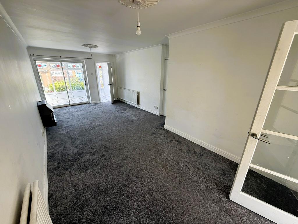Two-double radiators, door leading to enclosed staircase elevating to the first-floor accommodation and double glass panelled doors through to: