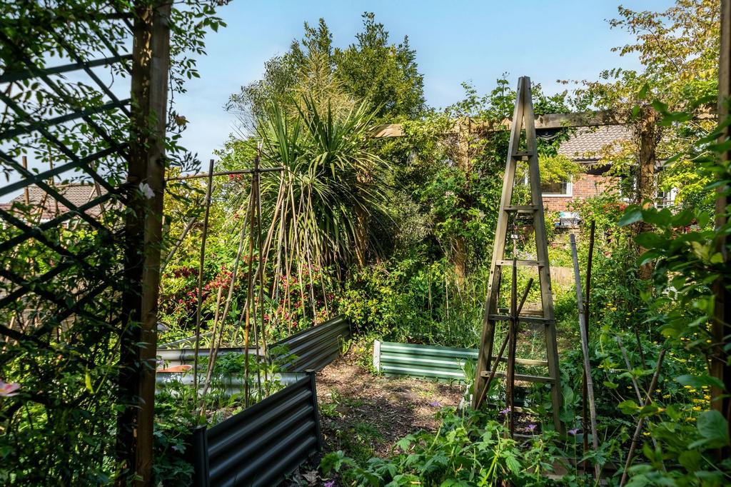 At the far end of the garden, a series of productive vegetable patches are currently thriving with homegrown tomatoes, courgettes, and mange tout — perfect for those who enjoy growing their own. A greenhouse provides a practical space for nurturing plants year-round, while a large shed towards the bottom of the garden offers flexible use and could easily be enjoyed as a summer house — the perfect spot to unwind on a warm evening.