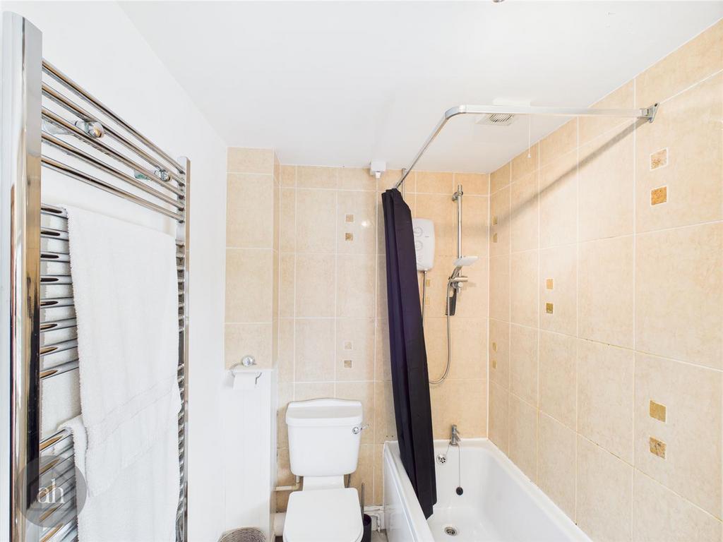 Bathroom - 9' 10'' x 4' 11'' (3.0m x 1.5m) - Bath with electric shower over, wash handbasin and WC. Window to front. Heated towel rail.