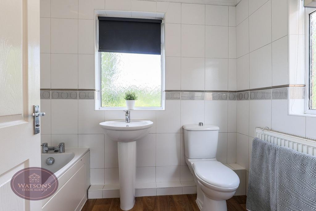 3 piece suite in white comprising WC, obscured uPVC double glazed windows to the rear & side, wood effect laminate flooring, radiator and LEB spotlights.